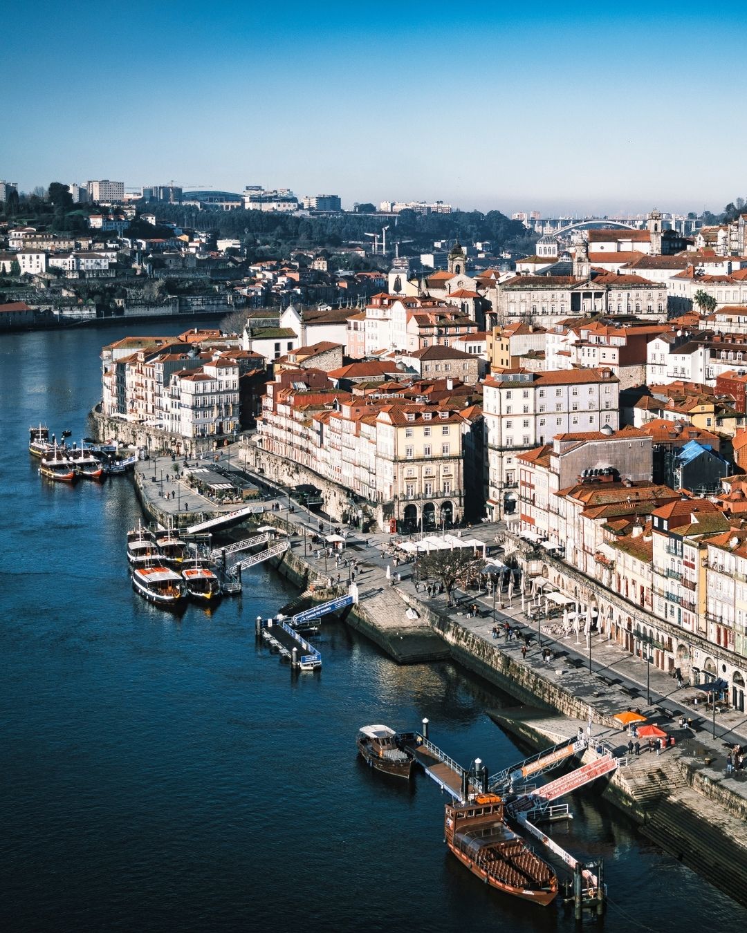 O rio Douro é a alma do Porto. As caves do vinho do Porto em Vila Nova de Gaia — Taylor's, Graham's, Sandeman, Ramos Pinto — oferecem provas, visitas e experiências enológicas únicas. Os cruzeiros no Douro, desde passeios de uma hora até viagens de vários dias até à região vinhícola do Alto Douro, Patrimônio UNESCO desde 2001, são uma das experiências mais memoráveis de Portugal. A região vinhícola do Douro, a apenas uma hora de carro, oferece quintas históricas, paisagens de socalcos deslumbrantes e alguns dos melhores vinhos do mundo.